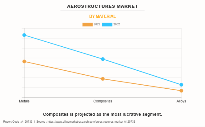 The aerostructures market size is segmented on the basis of component, material, aircraft type, and region. ivided by component into wing, fuselage, empennage, control surface and so on. The market is segmented by material into metals, composites and alloys. The market is classified into commercial aircraft, military aircraft and others according to type of aircraft. By region, the aerostructures market is analyzed in North America, Europe, Asia Pacific and LAMEA.