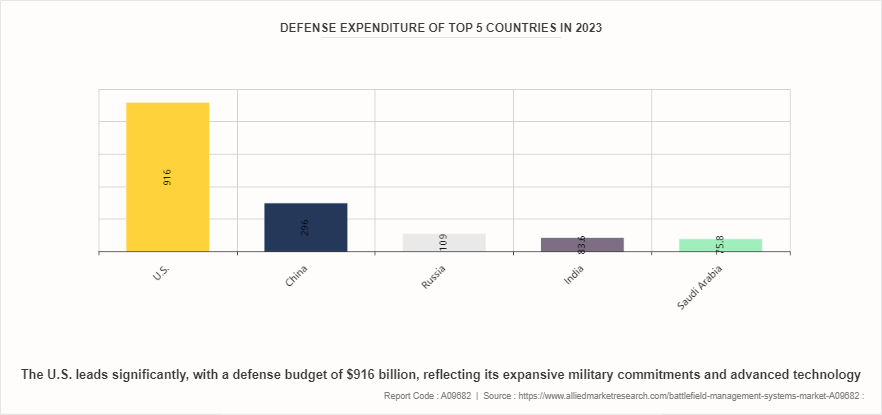Increased defense spending drives the growth of the battlefield management systems market owing to several important factors that align with modern military needs and technological advancements. As the global defense budgets expand, nations are investing significantly in enhancing their command, control, communications, and intelligence capabilities. This heightened investment directly benefits the battlefield management system sector by fostering the development and deployment of advanced systems designed to improve battlefield effectiveness and operational efficiency, which propels the market growth. However, the high costs are a major barrier for the battlefield management system market owing to developing, implementing, and maintaining advanced technologies which require substantial financial investment. This investment includes purchasing sophisticated hardware and acquiring cutting-edge software, which hampers the battlefield management systems market growth.