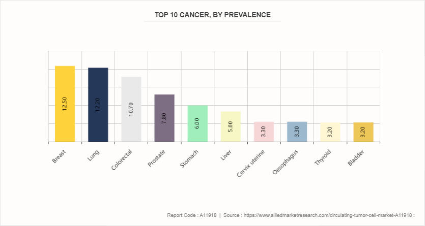 In addition, according to circulating tumor cells market opportunity analysis the rise in awareness about circulating tumor cells diagnosis is a significant driver for the circulating tumor cells market. This increased awareness is fueled by growing recognition among healthcare professionals and patients of the pivotal role circulating tumor cells play in cancer diagnosis, prognosis, and treatment monitoring. As awareness spreads, there is a greater demand for advanced diagnostic technologies and liquid biopsy methods that can detect and analyze circulating tumor cells with high precision. Thus, the rise in the awareness about the circulating tumor cells diagnosis is expected to drive the growth of the circulating tumor cells market size.
