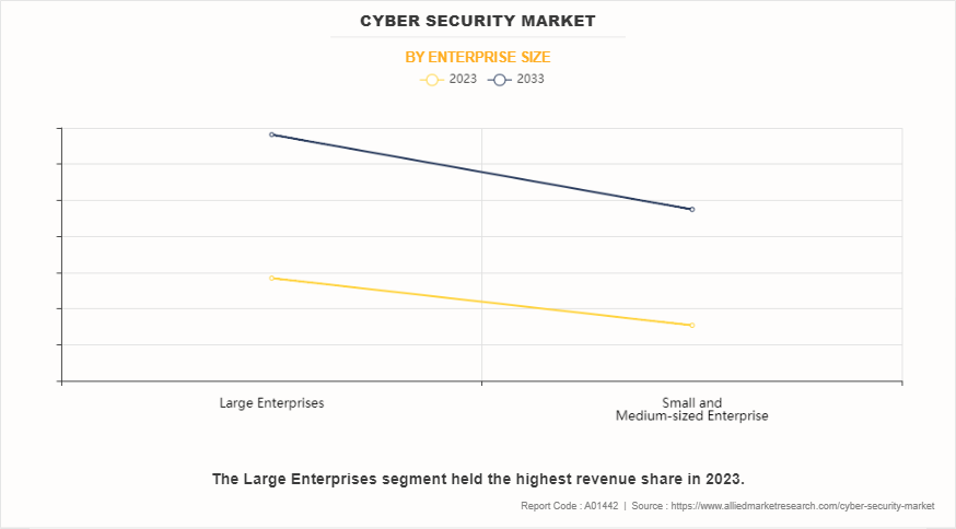 By enterprise size, the large enterprises segment held the largest share in the cybersecurity market for 2023.