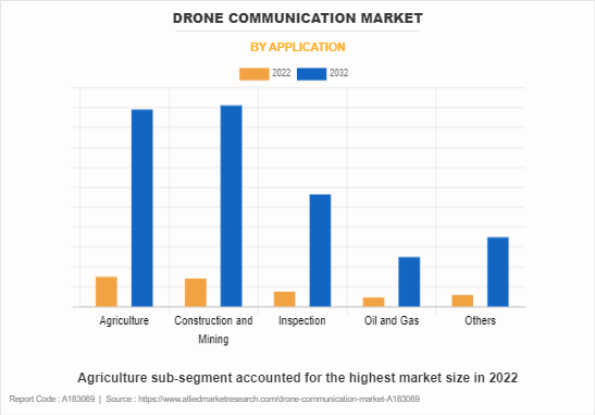 The use of drones in agriculture, construction & mining are the leading applications of the drone communication industry.