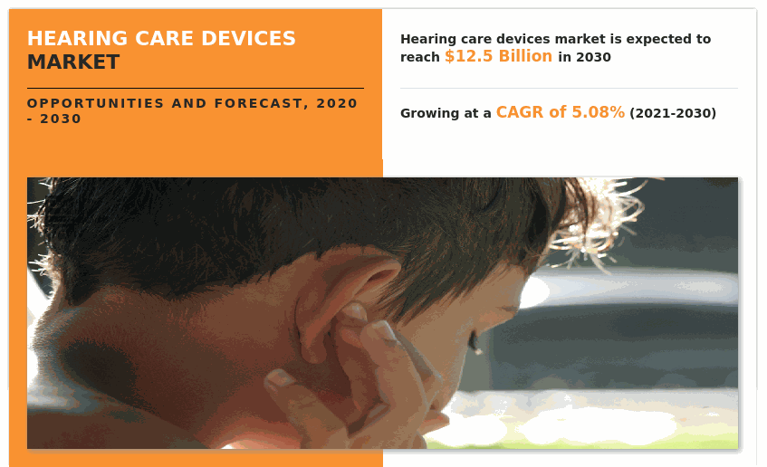 The Hearing Care Devices Market size was valued at $7.5 billion in 2020, and is projected to reach $12.5 billion by 2030, growing at a CAGR of 5.08% from 2021 to 2030.