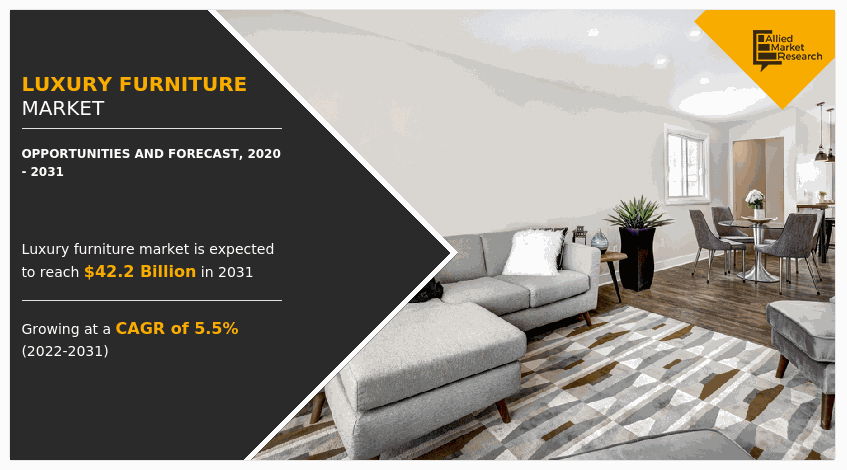 The global luxury furniture market was valued at $23,771.9 million in 2020, and is projected to reach $42,159.4 million by 2031, registering a CAGR of 5.5% from 2022 to 2031.