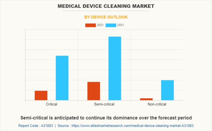 The global medical device cleaning market size was valued at $11.9 billion in 2021, and is projected to reach $31.3 billion by 2031, growing at a CAGR of 10.4% from 2022 to 2031. Cleaning medical devices and instruments is a process that helps to keep a patient safe.Sanitization or disinfection of medical devices can be accomplished using a variety of chemicals and reagents. It aids in killing microbes, or a foreign particle that is responsible for infecting healthy people.