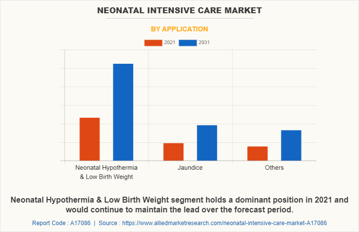 Based on application, the neonatal hypothermia & low birth weight segment dominated the market in 2021, and this trend is expected to continue during the Neonatal Intensive Care Market forecast period, owing to the increasing prevalence of neonatal hypothermia and the rise in the incidence of preterm birth. However, the jaundice segment is expected to witness considerable growth during the forecast period, due to an increase in the prevalence of neonatal jaundice and premature childbirth.