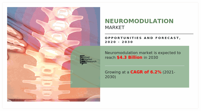 The global neuromodulation market size was valued at $2,480.21 million in 2020, and is projected to reach $4,342.50 million by 2030, growing at a CAGR of 6.2% from 2021 to 2030.