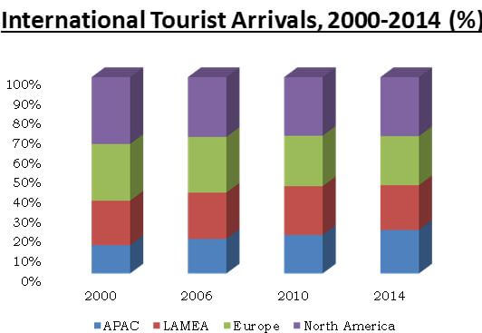 The global tourism industry has witnessed a steady growth in the past decade. According to WTO, international tourist arrivals grew at a rate of 4.4% in 2015 to reach $1,184 million, with North America witnessing a high outbound travel rate. Factors such as increase in disposable income, package holidays, extensive coverage of holiday types by media, and easy online travel bookings have attributed to the growth in tourism industry.