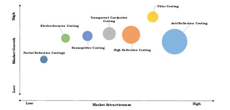 Antireflection coating is the most lucrative type for optical coating market, as it has large number of applications in electronics & semiconductor industry such as display units, memory, power, microprocessors, hard disc drives; and in construction industry, such as display cases, showrooms, restaurants, high-rise condominium, and apartments.