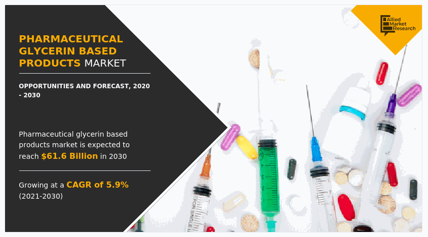 The global Pharmaceutical Glycerin Based Products Market size was valued at $34.6 billion in 2020 and is projected to reach $61.6 billion by 2030, growing at a CAGR of 5.9% from 2021 to 2030. Pharmaceutical glycerin is an organic compound known as glycerol and glycerin and is majorly used as an excipient in the pharmaceutical industry. Glycerin exhibits various benefits in medical and pharmaceutical preparations, such as improving smoothness, lubrication, and humectant. It is most commonly utilized in the formulation of suppositories, cough syrups, elixirs, and expectorants.