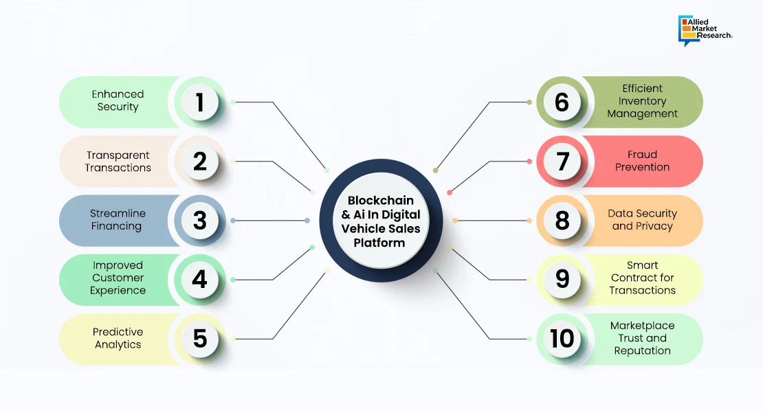 Blockchain ensures secure and transparent transactions through digital automobiles sales platform by providing a tamper-proof ledger system, thereby fostering trust and reducing fraud risk. This transparency extends to vehicle history and ownership records, empowering buyers with comprehensive information for informed decisions. The immutability and encryption techniques of blockchain ensure the privacy of sensitive data, thereby enhancing trust of customers upon these platforms. Furthermore, AI enhances the customer experience through personalized support and streamlined processes. Chatbots powered by AI offer instant assistance, schedule test drives, and facilitate transactions. Moreover, AI-driven predictive analytics optimize inventory management and pricing strategies, thus improving sales outcomes for sellers.