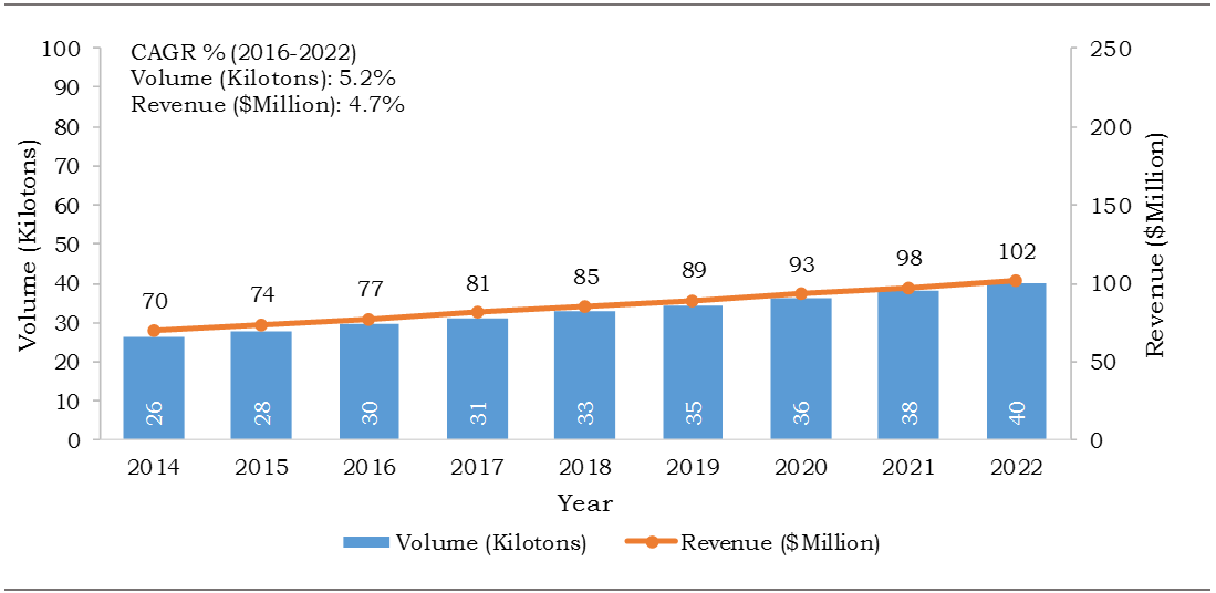 South Africa accounted for 8.8% share of the LAMEA Super absorbent polymers market, with $74 million in 2015, and is expected to reach $102 million by 2022, growing at a CAGR of 4.7%.