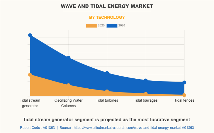 By type, the wave energy segment dominated the global Wave and tidal energy market in 2020, and is projected to remain the fastest-growing segment during the forecast period. This is attributed to rising dependency on electricity and renewable energy.